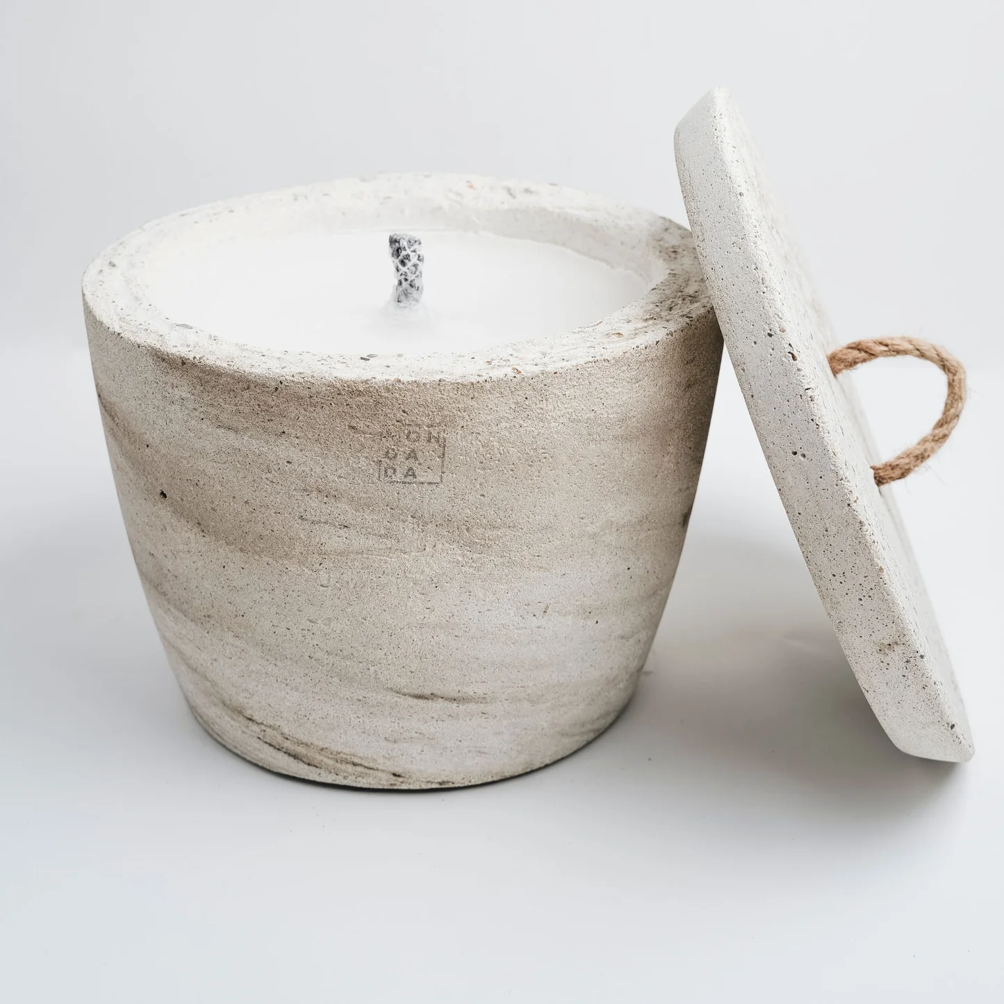 Handgemaakte betonnen kaars voor buitengebruik.